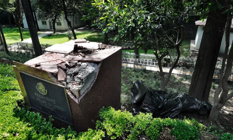 En un incidente provocado por la caída de un árbol, la estatua de Felipe Calderón fue derribada en Los Pinos. Se analiza su posible restauración mientras surgen reacciones públicas
